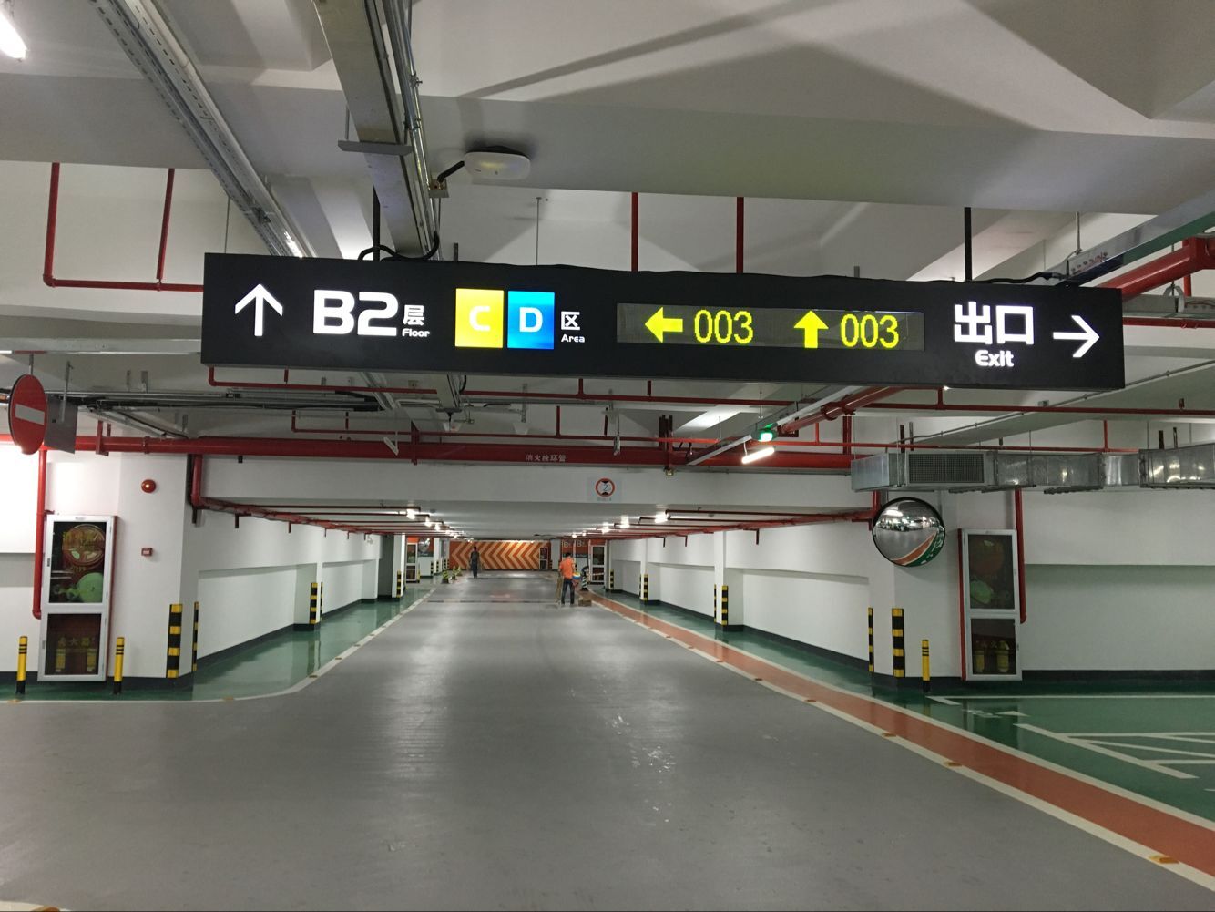 共有654个车位,全部运用蓝卡“一对六”高清视频车位引导系统覆盖。入口处的剩余车位显示屏可显示本车场内各区域剩余车位总数。进入车场后,车位引导屏清晰指引各方向空余车位数量,车位检测器为绿色代表对应6个车位内有空位,车主可据此迅速找到车位。避免了与其他老旧停车场一样,需要反复绕圈找车位的繁复。