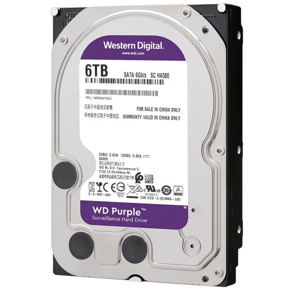 WD Purple 西数紫盘 6TB 256MB SATA CMR (WD64PURZ)监控级硬盘