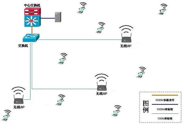 为了适应内部人员及来访客户的无线上网的需要,XX广场的无线网络设计考虑WIFI的全覆盖,采用无线网络技术搭建无线局域网平台。该平台可以根据需要,采用不同的工作模式,通过多个接入点分别与有线网络联接,形成以有线网络为主干的多接入点的无线网络,所有的无线终端都可以通过就近的无线接入点接入客户网,并访问网络资源。